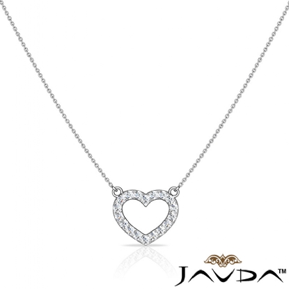 Gorgeous open heart pendant necklace crafted in 14k white gold. This romantic pendant features dazzling 0.50 carat round diamonds set in a micro pave setting and pretty 16 inches chain that secures with a spring ring clasp .