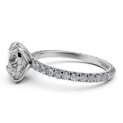 This gorgeous french pave round diamond engagement ring crafted in 14k white gold. Showcases 0.50 carat round diamonds in a french pave setting can be set with center round diamond in a prong setting. Also available in 14k & 18k white gold, yellow gold, rose gold and platinum 950. If you don't find your desired jewelry, please don't hesitate to contact our designer to make your custom jewelry design.