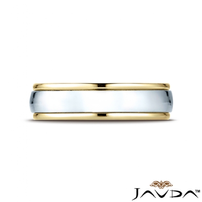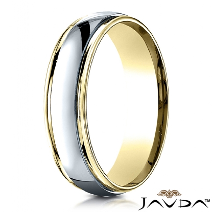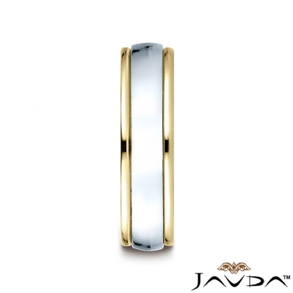 This gorgeous 6mm comfort fit carved design band for men's and women's made from high polished 14k two tone gold along the edges that is sleek and so delicate. This stylish and quality unisex wedding band is long lasting and perfect for everyday wear.