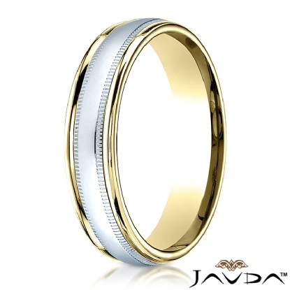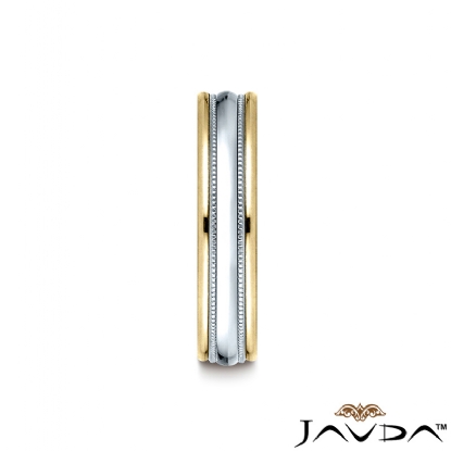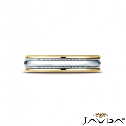 Comfort Fit Domed Milgrain 2 Tone Gold Wedding Band Unisex