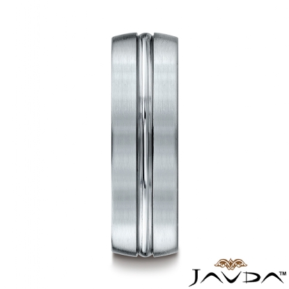 Satin Finished Center Groove White Gold Unisex Wedding Band