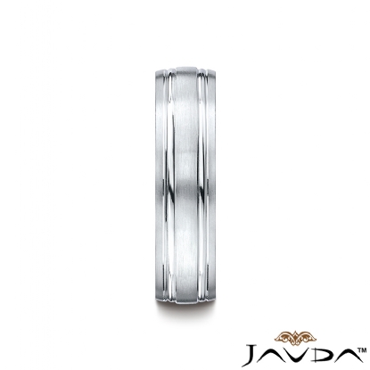 Satin Finish Parallel Grooves Men's Wedding Band White Gold