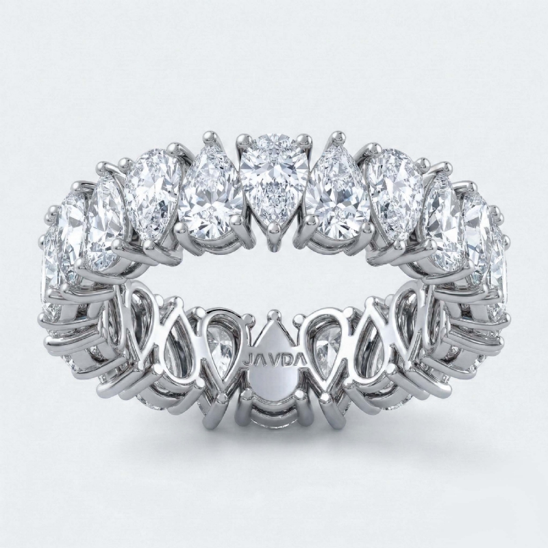 Glamorous waterdrop pear shape HPHT lab-grown diamond women's eternity wedding band crafted in 14k white gold. This beautiful classic ring showcases 3.78 carat diamonds secured with shared prong. Add a touch of elegance to any outfit, also available in 14k & 18k white gold, yellow gold, rose gold and platinum 950. If you don't find your desired jewelry, please don't hesitate to contact our designer to make your custom jewelry design.