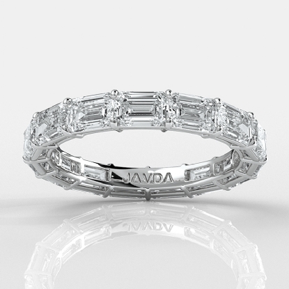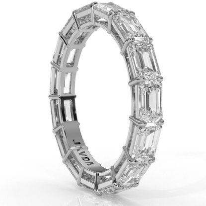 This brilliant east west emerald shape HPHT lab-grown diamond wedding band for women's made in 14k white gold. This charming wedding band showcases 3.54 carat emerald diamond secured with shared prong. It is a beautiful complement to many delicate engagement rings, also available in 14k & 18k white gold, yellow gold, rose gold and platinum 950. If you don't find your desired jewelry, please don't hesitate to contact our designer to make your custom jewelry design