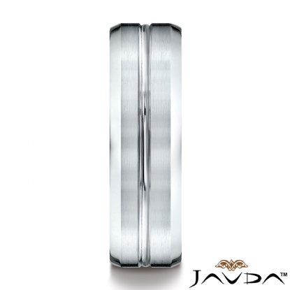 Center Grooved Beveled Edge Men's Wedding Band White Gold