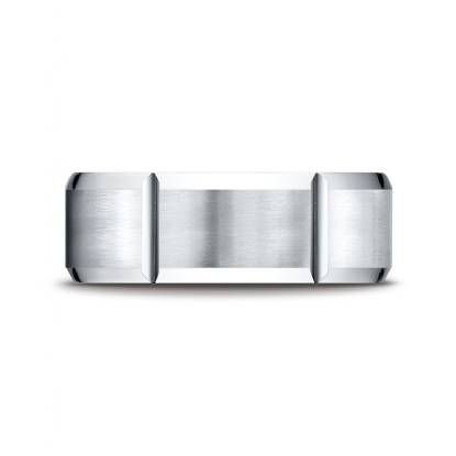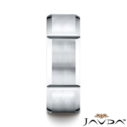 Vertical Grooved Beveled Edge White Gold Unisex Wedding Band