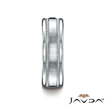 Satin Finish Comfort Fit White Gold Men's Rope Wedding Band