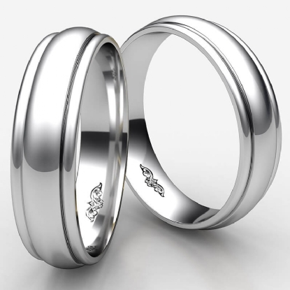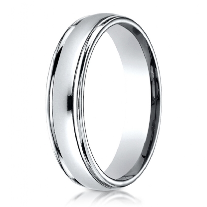 Simply elegant and timeless 4.5mm comfort fit unisex carved design wedding band features center domed style along the high polished edge. This classic wedding band for men's and women's is comfortable and durable, made from precious 14k white gold. Available in white gold, yellow gold and rose gold.