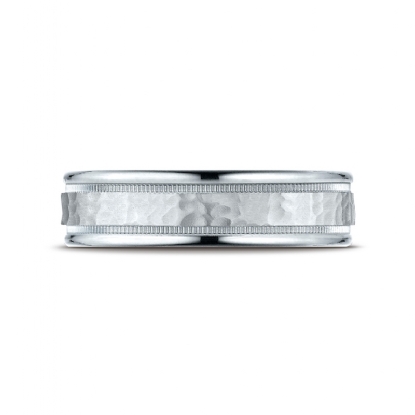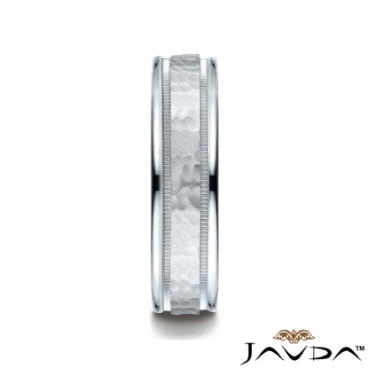 Hammered Finish Unisex Milgrain Edge Wedding Band White Gold