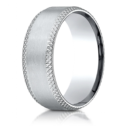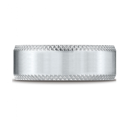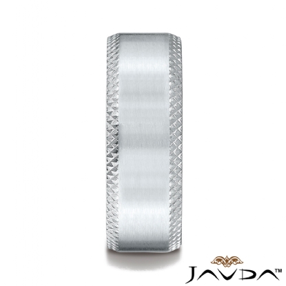 Beveled Cross Hatched Edge Unisex Wedding Band White Gold