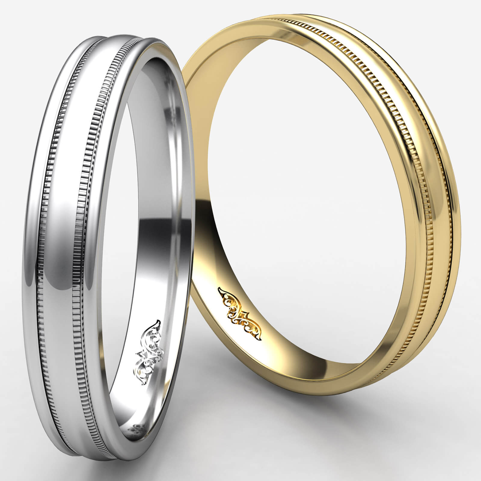 High Polished Unisex Milgrain Carved Wedding Band White Gold