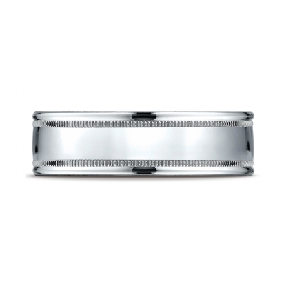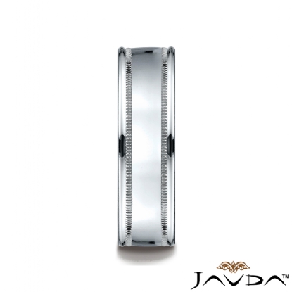 Unisex High Polished Milgrain Domed White Gold Wedding Band