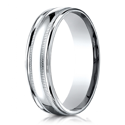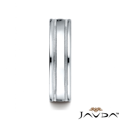 Classic High Polish Milgrain Unisex White Gold Wedding Band