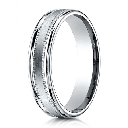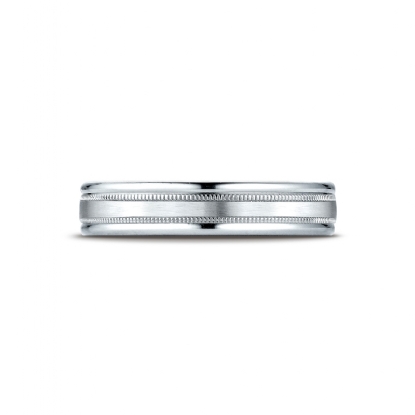 This classic 4mm comfort fit carved wedding band features a satin finished center along with milgrain and high polished round edge. The quality 14k white gold Unisex wedding band is durable and comfortable to wear everyday. This ring is symbolizes the stength of marriage, the craftsmanship of this band is truly remarkable. Available in white gold, yellow gold and rose gold.