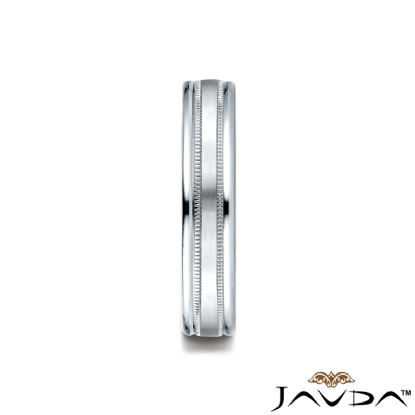 Satin Finished Milgrain Unisex White Gold Carved Wedding Band