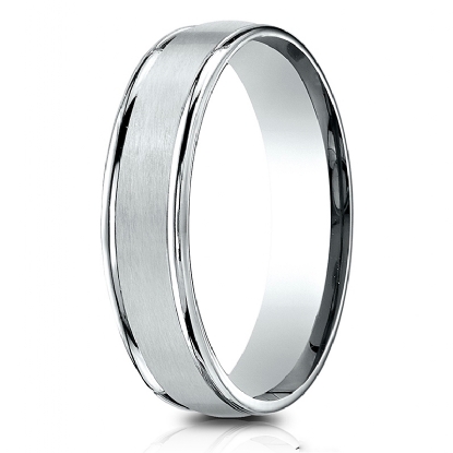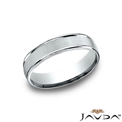 This modern unisex comfort fit carved wedding band features a satin finished along the center with high polished round edges. The classic 5mm width wedding ring is made from quality 14k white gold and it is comfortable to wear everyday. This gold wedding band for men's and women's is long lasting. Available in white gold, yellow gold and rose gold.
