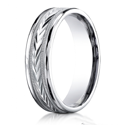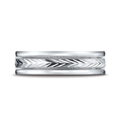 This comfort fit unisex 6mm harvest of love carved design wedding band features a variety of directional arrows along the center with milgrain accents and high polished round edges. The timeless gold wedding band for men's and women's symbolizes everlasting love. This incredible band is made from quality 14k white gold. Available in white gold, yellow gold and rose gold.