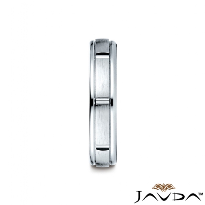 Unisex Satin Center Cut Round Edge Wedding Band White Gold