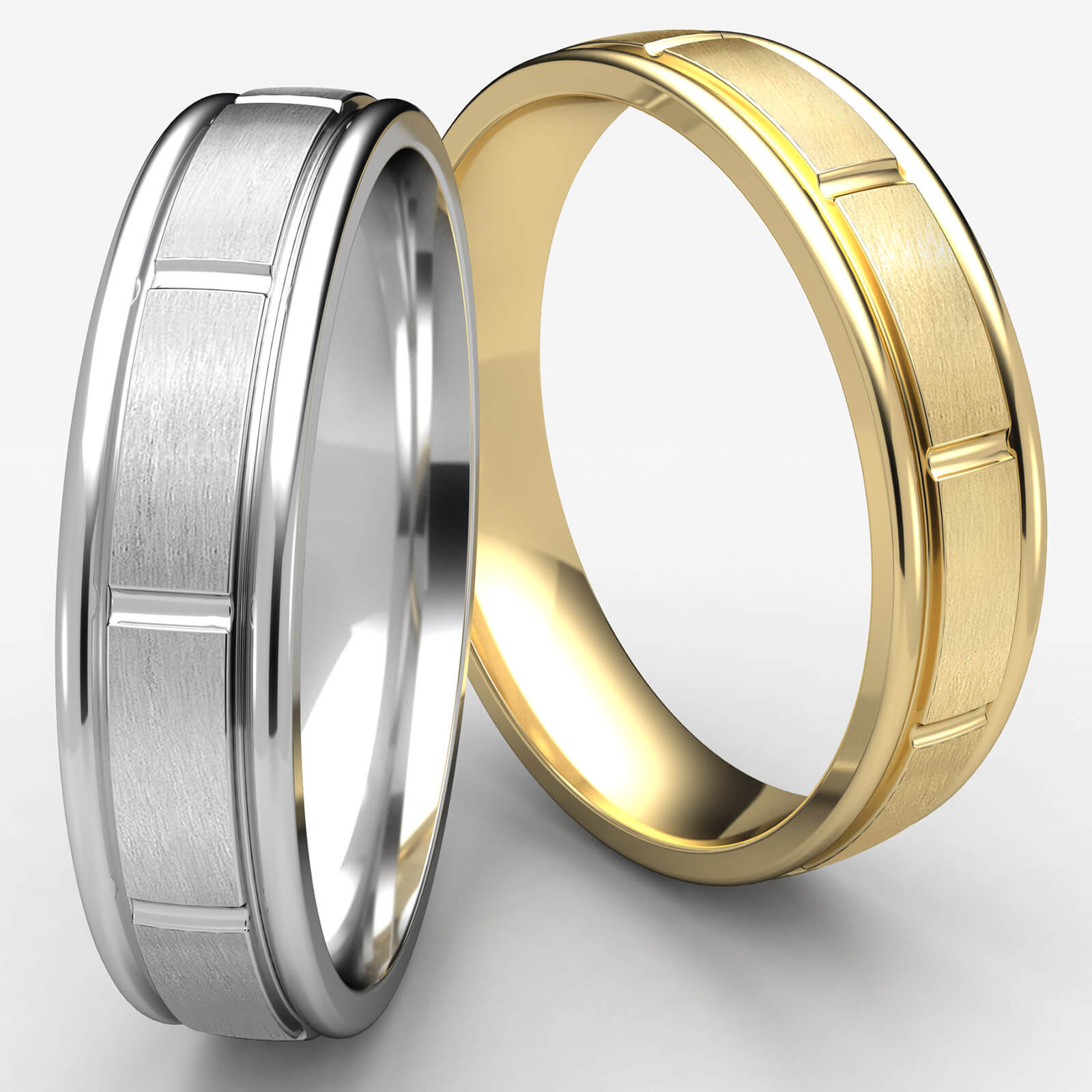 This unique comfort fit unisex carved design wedding band features a satin finished verticle center cuts with high polished round edges. The stunning gold wedding ring for men's and women's is comfortable to wear everyday. This classic ring is made from quality 14k white gold, measure 6mm wide. Available in white gold, yellow gold and rose gold.