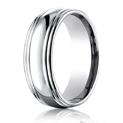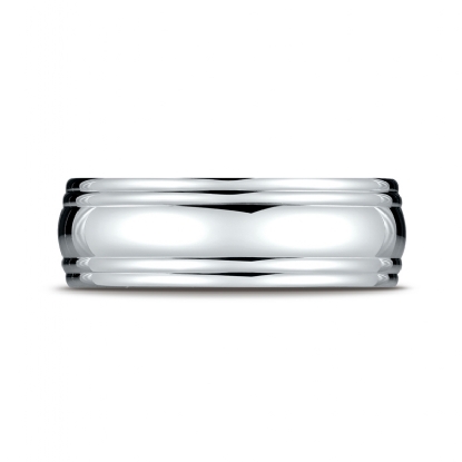 High Polish Double Round Edge Men's Wedding Band White Gold