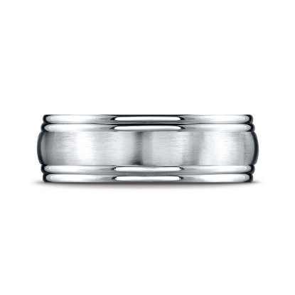 Satin Center Double Round Edge Men's Wedding Band White Gold