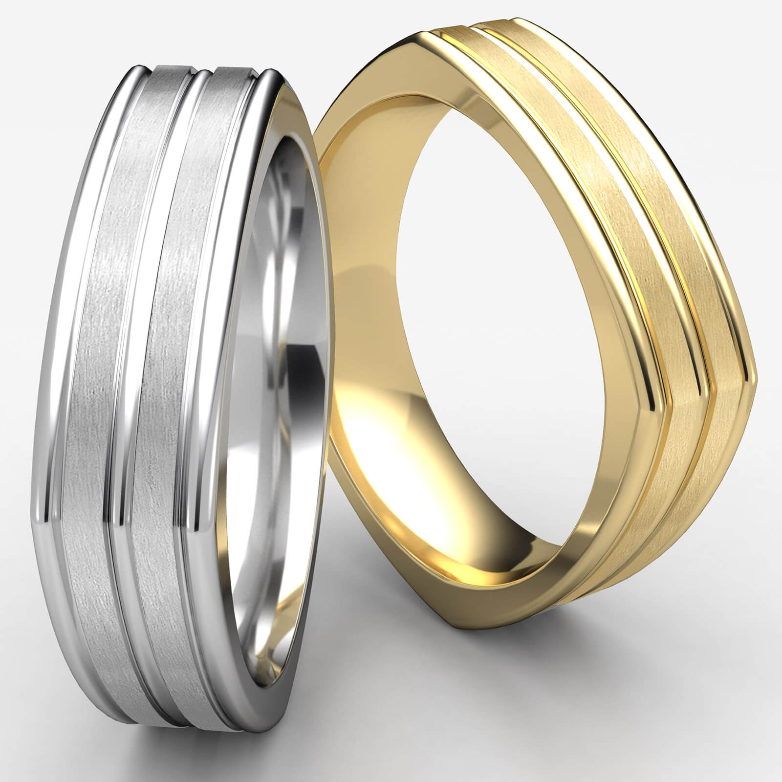 This incredible 7mm comfort fit four sided men's wedding band features a satin finished center and a high polished center cut design and rounded edges. This squared style wedding band is comfortable to wear everyday and quality craftsmanship makes long lasting, this band is made from 14k white gold. Available in white gold, yellow gold and rose gold.