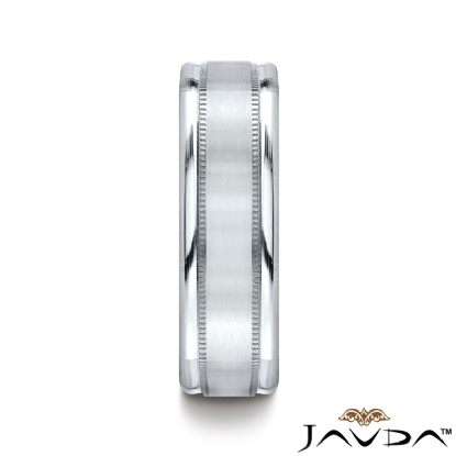 Four Sided Satin Finish Milgrain White Gold Wedding Band Men