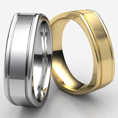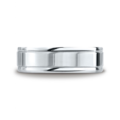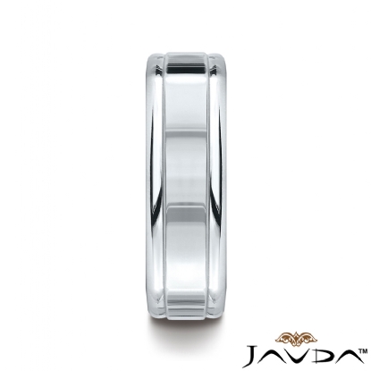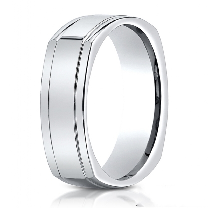 This charming comfort fit four sided handsome wedding band features a high polished finished with rounded edges. Modern squared style carved design men's wedding band is comfortable to wear everyday and quality craftsmanship makes long lasting. This 7mm width band is made from 14k white gold. Available in white gold, yellow gold and rose gold.