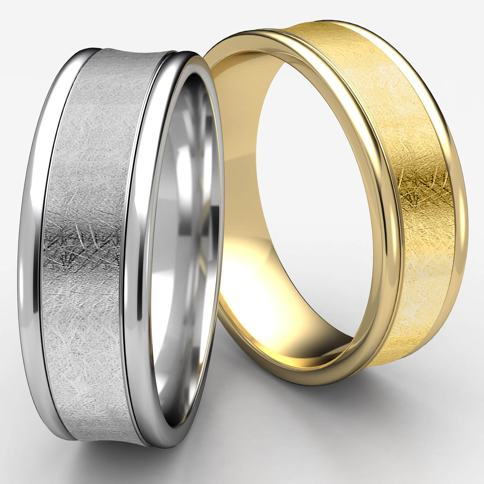 Swirled Finish Center Concave Unisex White Gold Wedding Band