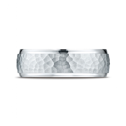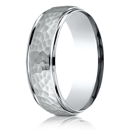 Polished Edge Hammered Finish Unisex Wedding Band White Gold