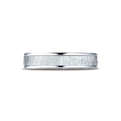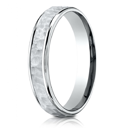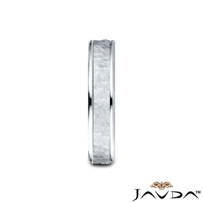 Unisex Hammered Finish Polished Edge Wedding Band White Gold