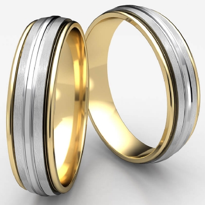Satin Center Groove Unisex Two Tone Gold Pledge Wedding Band