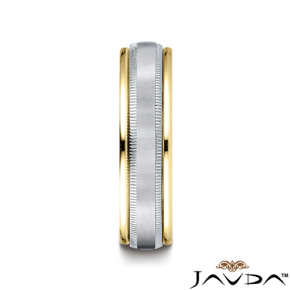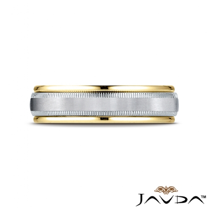 Unisex Two Tone Gold Satin Milgrain Comfort Fit Wedding Band