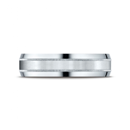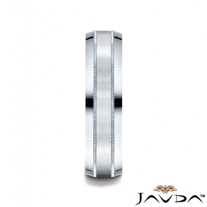 Beveled Edge Milgrain Satin Unisex White Gold Wedding Band