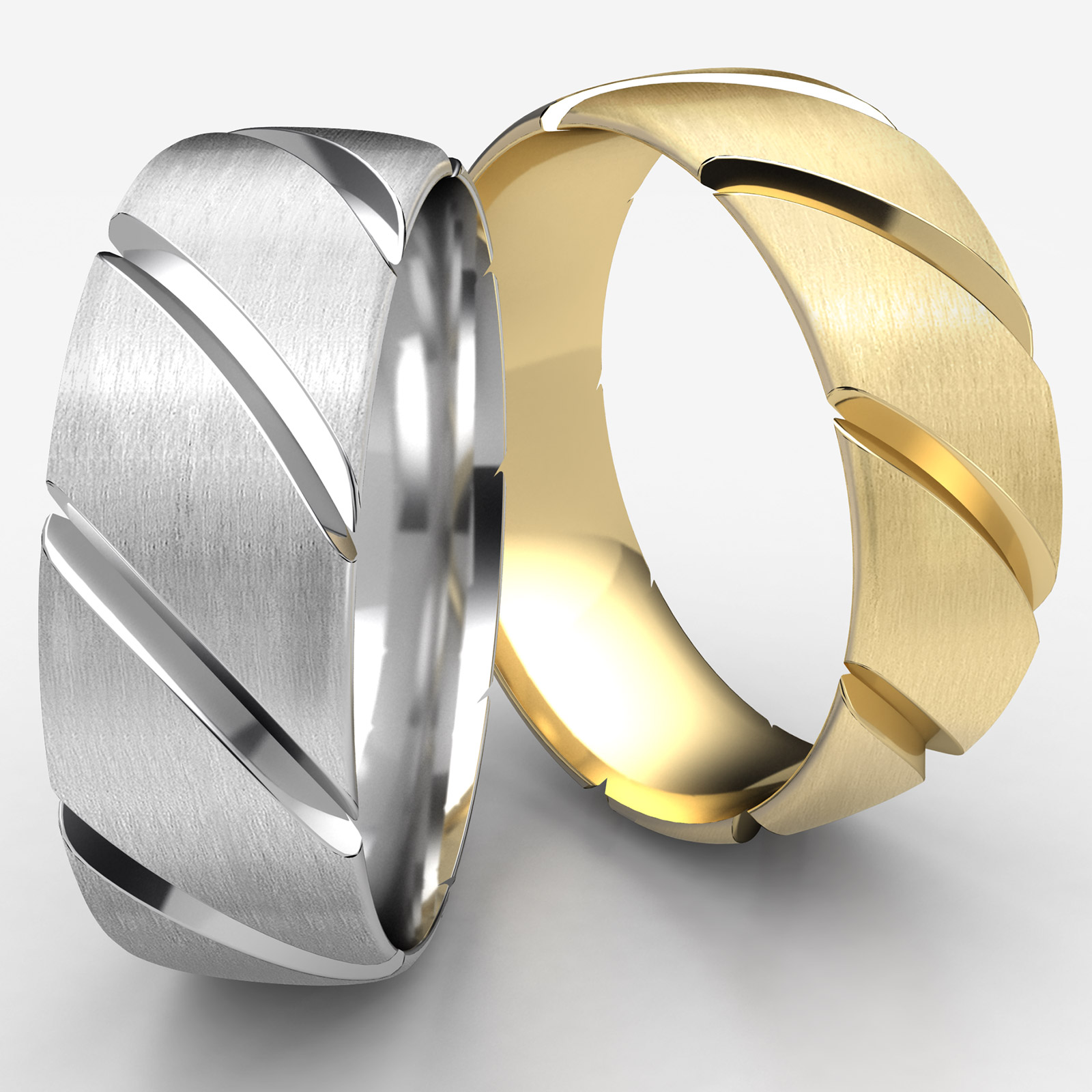 An elegant unisex comfort fit wedding band features a satin finished candy cane design for modern look. Made from 14k white gold, measures 7.5mm wide. This solid wedding ring for men's and women's is long lasting and comfortable to wear everyday. Available in white gold, yellow gold and rose gold.