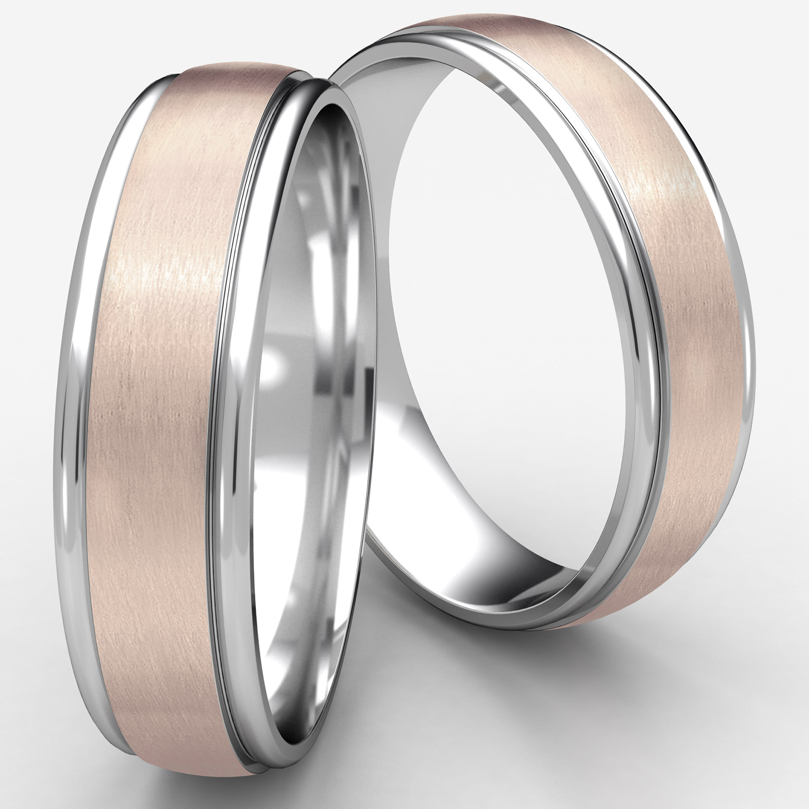 Satin Center Polished Edge Unisex Two Tone Gold Wedding Band