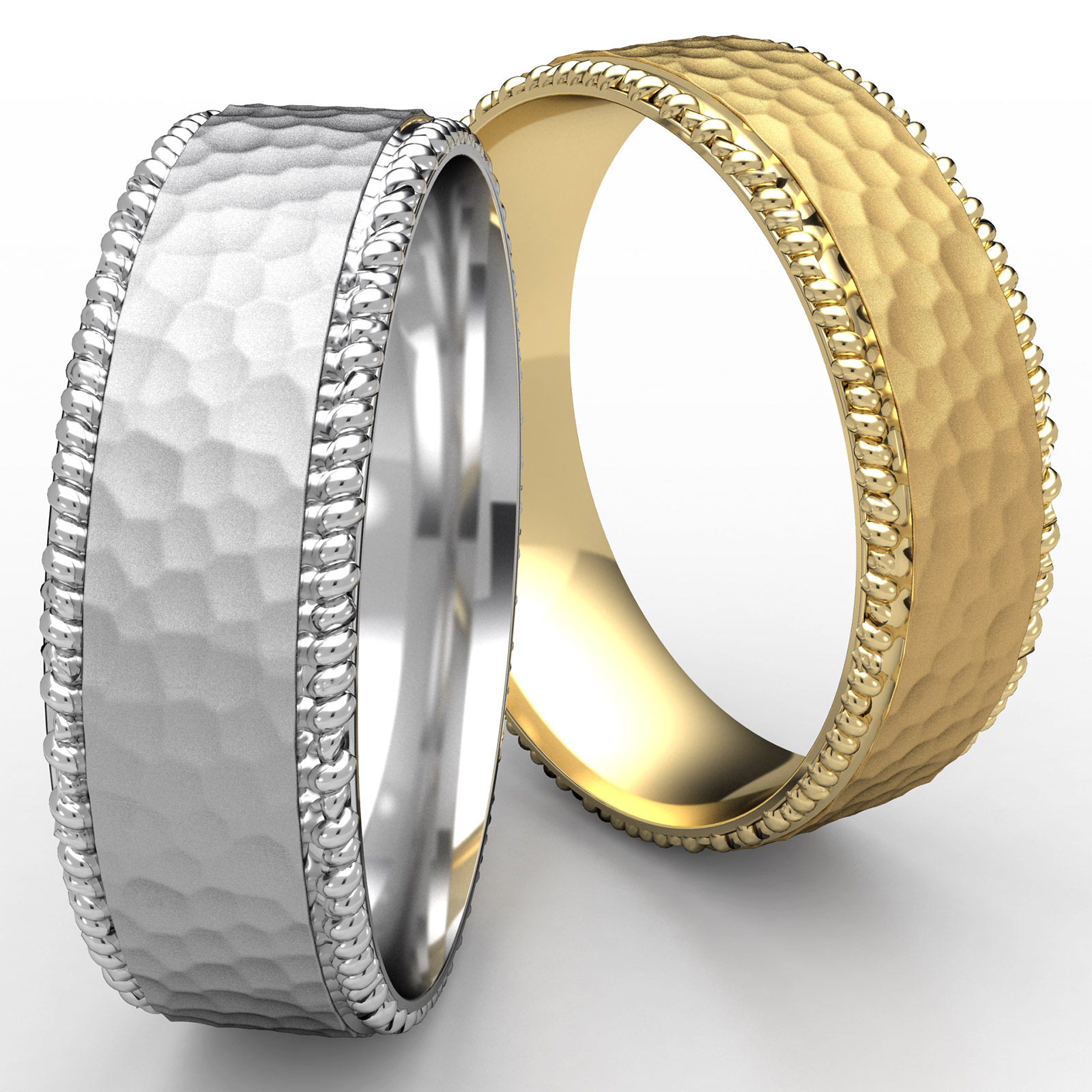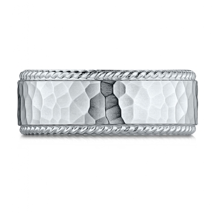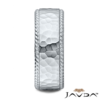 Hammered Finish Center Rope Edge Wedding Band White Gold Men