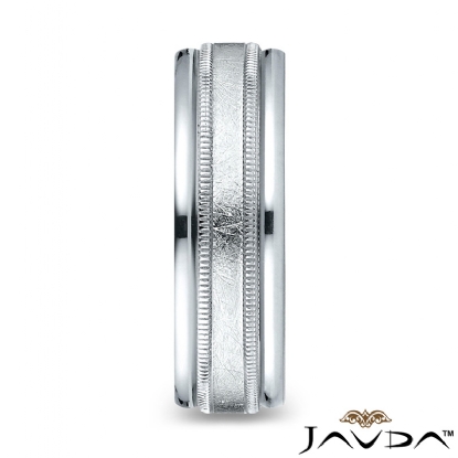 Swirl Finish Milgrain Round Edge Men Wedding Band White Gold