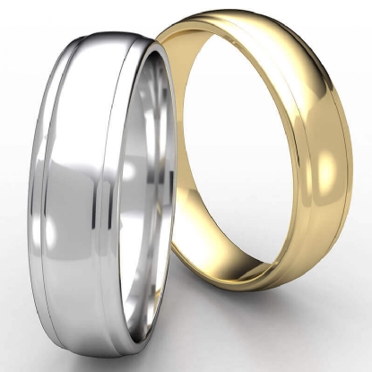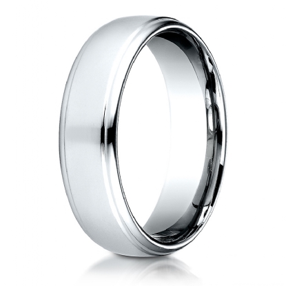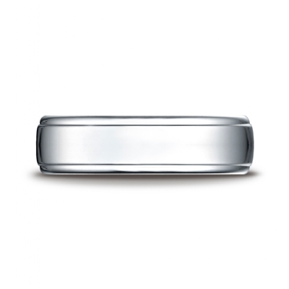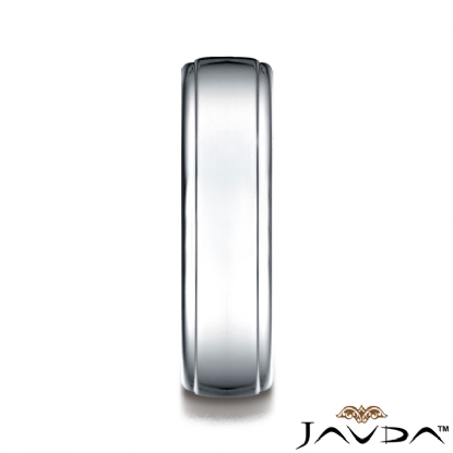This classic comfort fit men's carved wedding band features a drop edge high polished finish. The solid wedding band for him is made from 14k white gold, measures 6.5mm wide. This wedding ring is long lasting and perfect for everyday wear. Available in white gold, yellow gold and rose gold.