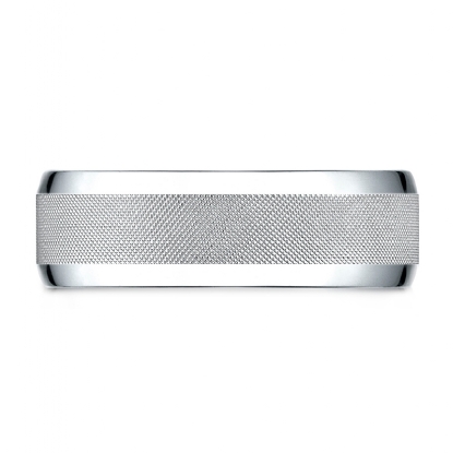 Beveled Edge Florentine Center Men's White Gold Wedding Band