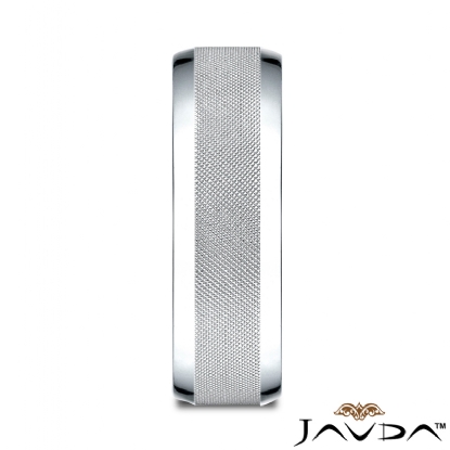 Stunning comfort fit carved wedding band features a florentine center with high beveled edges. This handsome men's wedding band is long lasting and comfortable to wear everyday. Made from 14k white gold, measures 7mm wide. Available in white gold, yellow gold and rose gold.