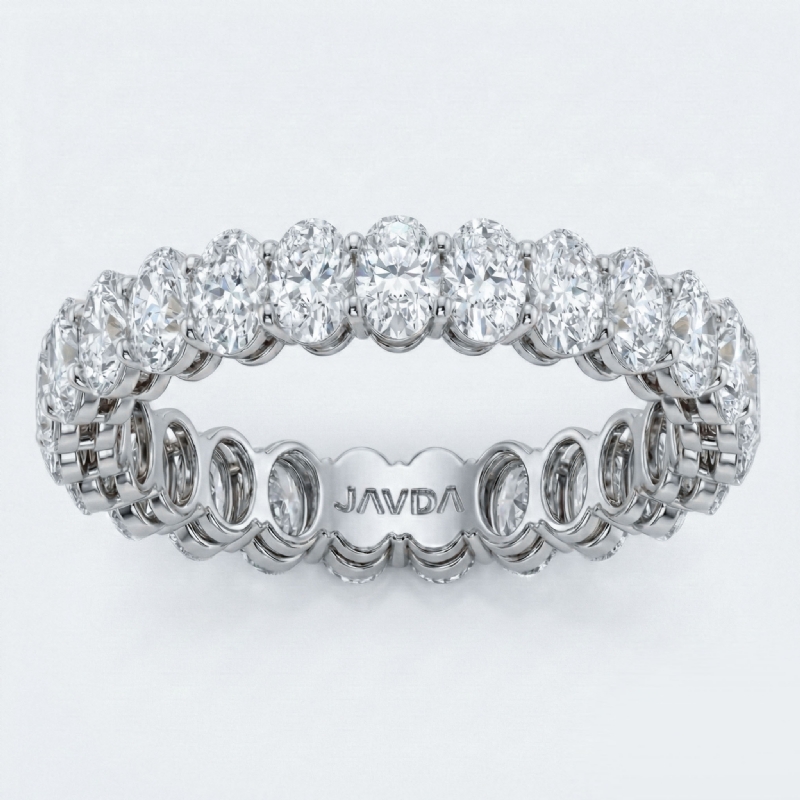 This classic, elegant wedding band features 25 oval HPHT lab-grown diamonds set in delicately sculpted shared prongs crafted in 14k white gold. This women's eternity ring features 2.06 carat oval diamonds. This band is the perfect wedding or anniversary ring, also available in 14k & 18k white gold, yellow gold, rose gold and platinum 950. If you don't find your desired jewelry, please don't hesitate to contact our designer to make your custom jewelry design.