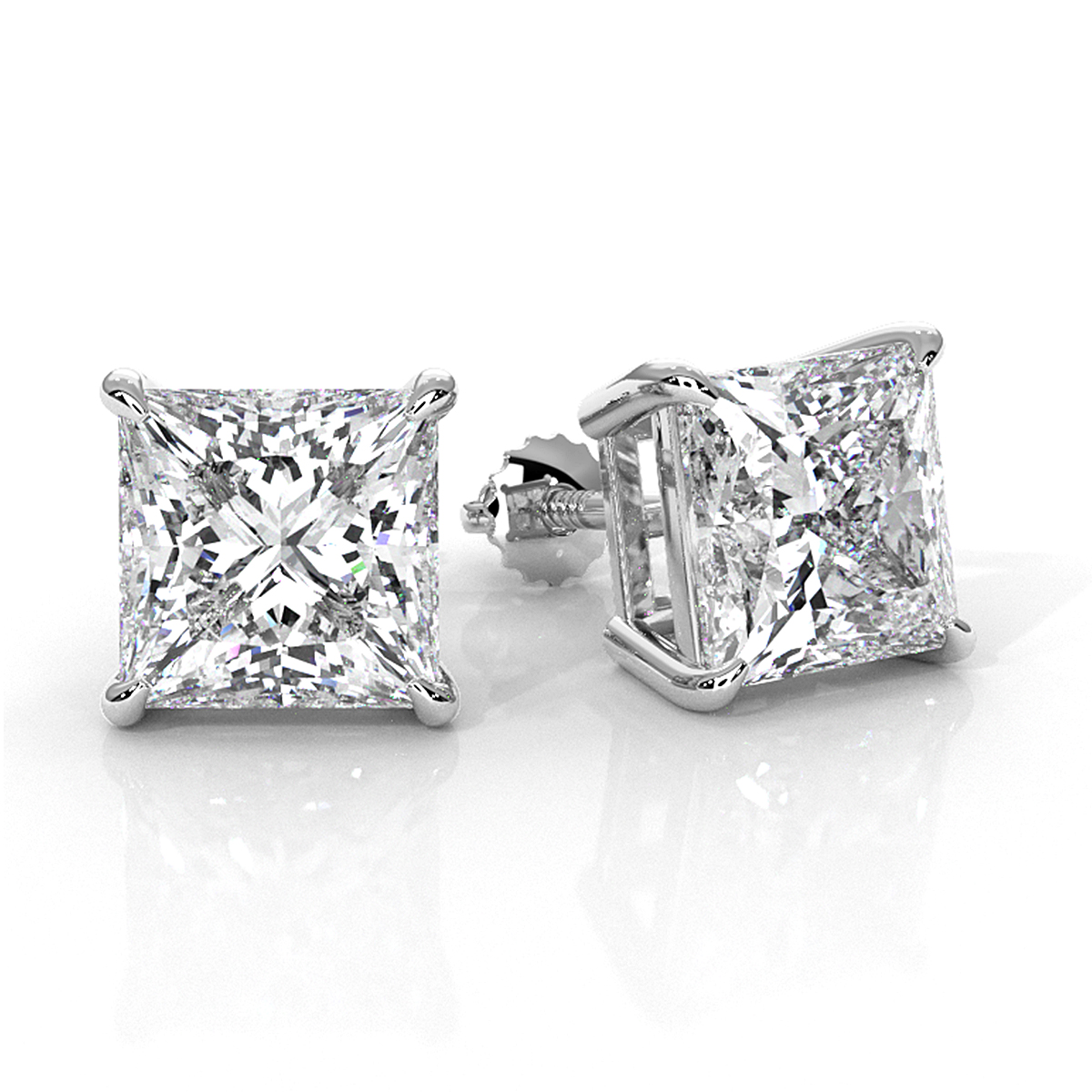 Lab grown Princess Diamond Claw Prong Stud Earring IGI 14k White Gold 6.00 ctw.
