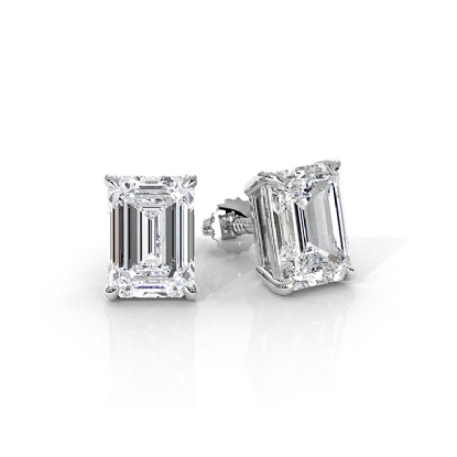 Striking pair of claw prong basket emerald lab grown diamond women's stud earrings intricately fashioned in 14k white gold. These enduring earrings features a 2.00 ctw. carat emerald diamond and certified by IGI secured with claw prongs. "Classic Beauty, Modern Sophistication." Also available in 14k & 18k white gold, yellow gold, rose gold and platinum 950. If you don't find your desired jewelry, please don't hesitate to contact our designer to make your custom jewelry design