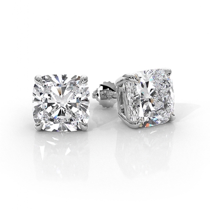 Stunning set of claw prong basket style cushion lab grown diamond women's stud earrings handmade in lustrous 14k white gold, certified by IGI, showcasing a breathtaking 4.00 ctw. cushion diamond securely set with claw prongs. Perfect for special occasions, also available in 14k & 18k white gold, yellow gold, rose gold, and platinum 950. If you don't find your desired jewelry, please don't hesitate to contact our designer to make your custom jewelry design