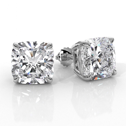 Cushion lab grown diamond claw prong basket style women's stud earrings are crafted in lustrous 14k white gold. These delightful earrings features a 8.00 ctw. carats princess diamonds securely claw prong setting, with IGI certification. Also available in 14k & 18k white gold, yellow gold, rose gold and platinum 950. If you don't find your desired jewelry, please don't hesitate to contact our designer to make your custom jewelry design