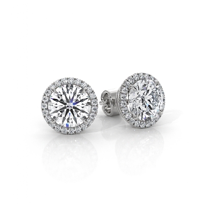 Gift the women you love with this beautiful pair of claw prong brilliant halo round lab grown diamond earrings crafted in 14k white gold with IGI Certified. Showcases 2.18 ctw. carat round diamond secured with claw prong. A lovely symbol of forever., also available in 14k & 18k white gold, yellow gold, rose gold and platinum 950. If you don't find your desired jewelry, please don't hesitate to contact our designer to make your custom jewelry design.