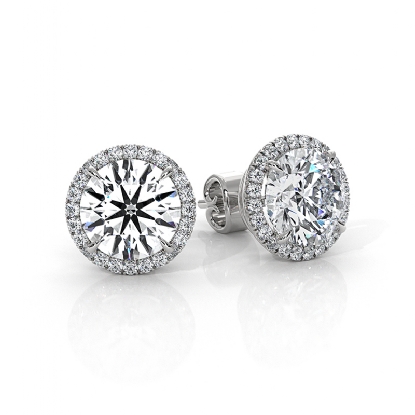 Brilliant pair of claw prong halo round lab grown diamond earring for women's made in 14k white gold. This charming earring showcases 3.24 ctw. carat round diamond secured with 4 claw prong IGI Certified. Perfect for everyday wear, also available in 14k & 18k white gold, yellow gold, rose gold and platinum 950. If you don't find your desired jewelry, please don't hesitate to contact our designer to make your custom jewelry design.
