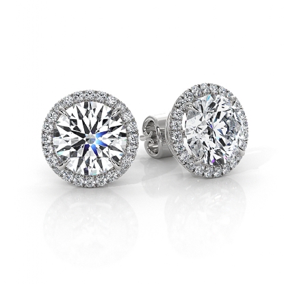 Stunning claw prong women's halo round lab grown diamond basket style earrings made in 14k white gold. This elegant diamond earrings showcases 4.31ctw. carat round diamond in a claw prong setting. This pair of earring is suitable for any occasions. Also available in 14k & 18k white gold, yellow gold, rose gold and platinum 950. If you don't find your desired jewelry, please don't hesitate to contact our designer to make your custom jewelry design.