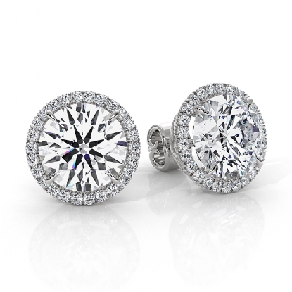 This stunning and timeless women's claw prong halo round diamond basket style earrings crafted in high quality 14k white gold. Showcases 6.35 ctw. carat round diamond beautifully set in a claw prong setting. Leave a lasting impression with this beautiful fashion earrings, also available in 14k & 18k white gold, yellow gold, rose gold and platinum 950. If you don't find your desired jewelry, please don't hesitate to contact our designer to make your custom jewelry design.